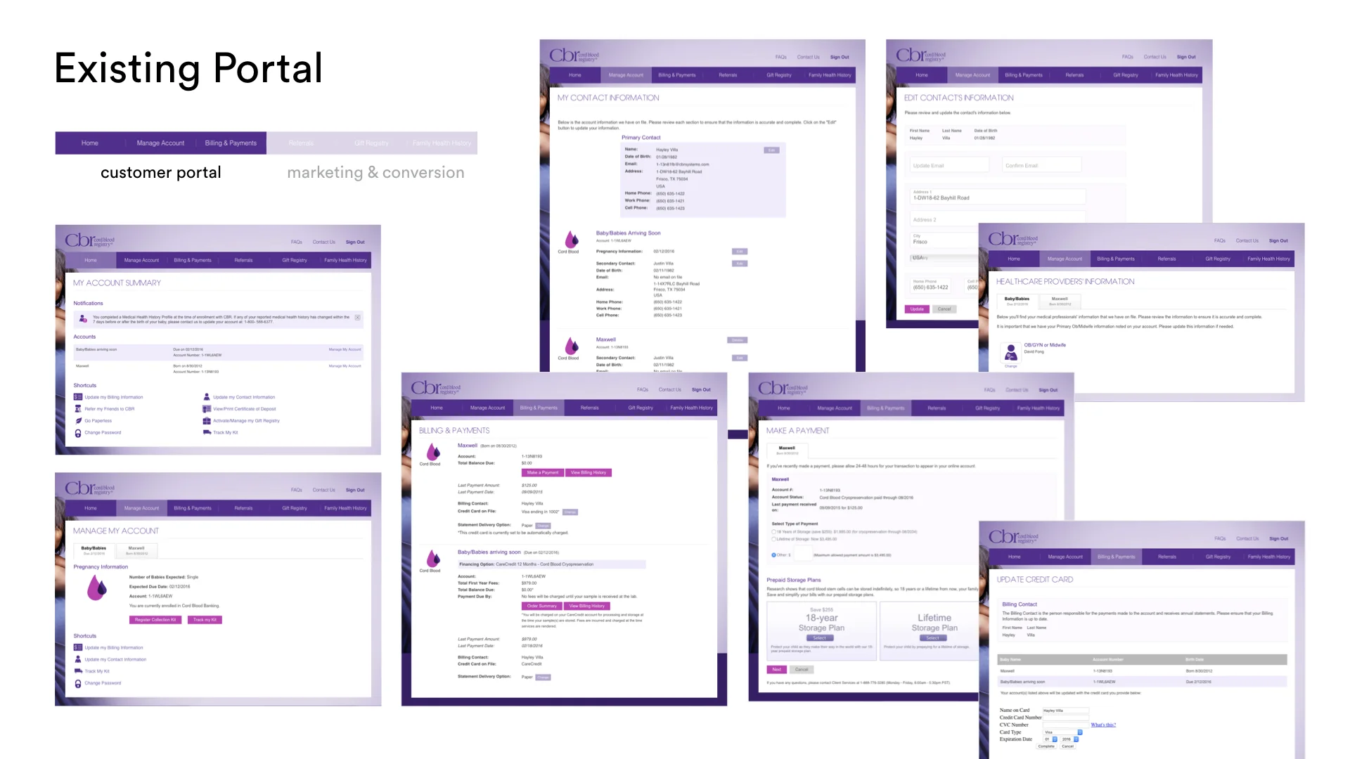 Cord Blood Registry’s client portal is a banking app. A blood banking app. The service allows new parents to preserve their baby’s newborn stem cells for a variety of potential future medical applications. The CBR marketing site had received a rebranded and responsive redesign. But the client portal, where a customer views their account status, had not.