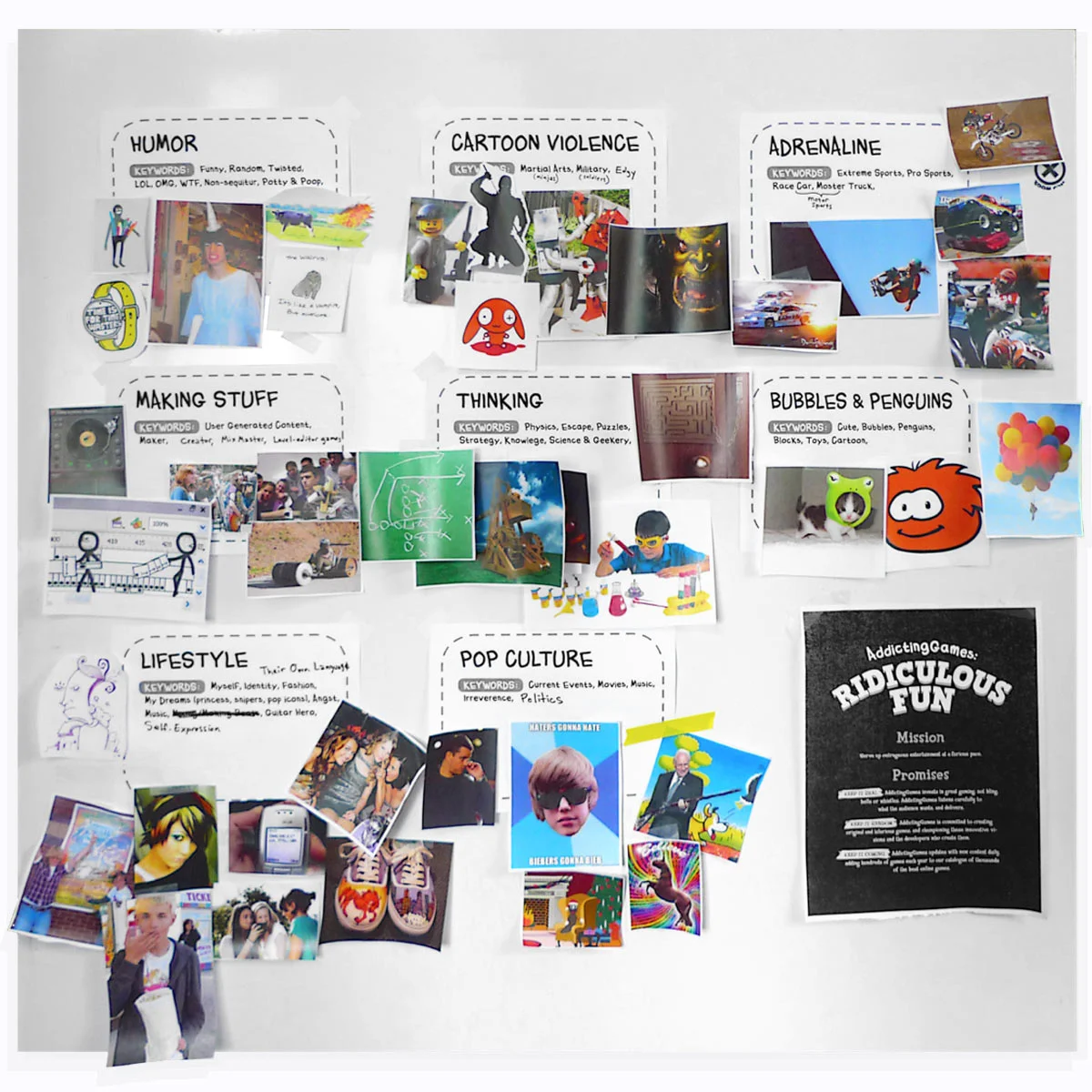 And so the high-wire balancing act began. The first step was proving the property's cultural relevancy. We transformed AddictingGames from its indie startup persona into a title that could sit comfortably under the family-friendly Nickelodeon banner. The challenge was to continue to reference the nerdy, DIY, and edgy vibethat had drawn in a loyal fanbase in the first place.